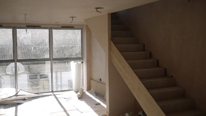 I visited the office last week – the first and second floors are mostly completed with flooring just being finished and the whole interior plastered. The electrics were completed towards the end of last week and this week we’ll see the internal dividers finished, decorating completed with the walls and ceiling painted, the spiral staircase fitted, internet connected, kitchen plumbed in and the initial arrival of furniture.