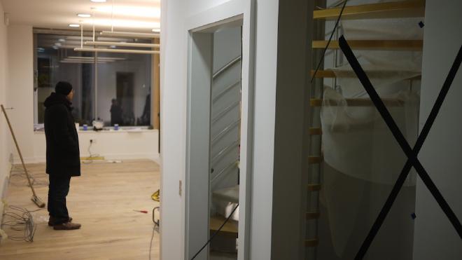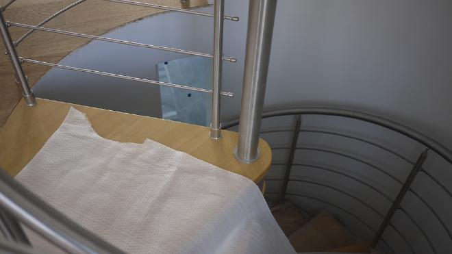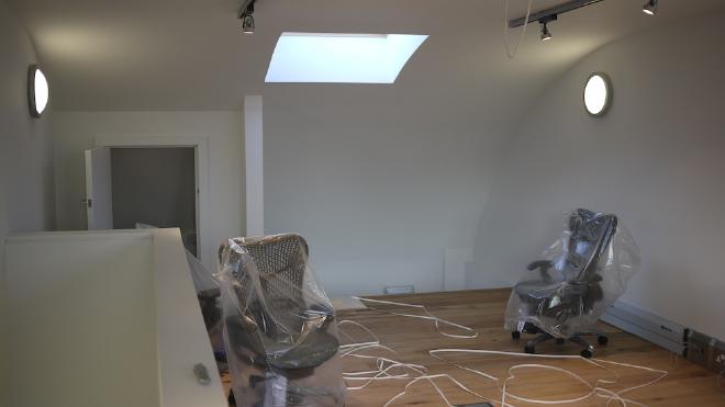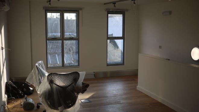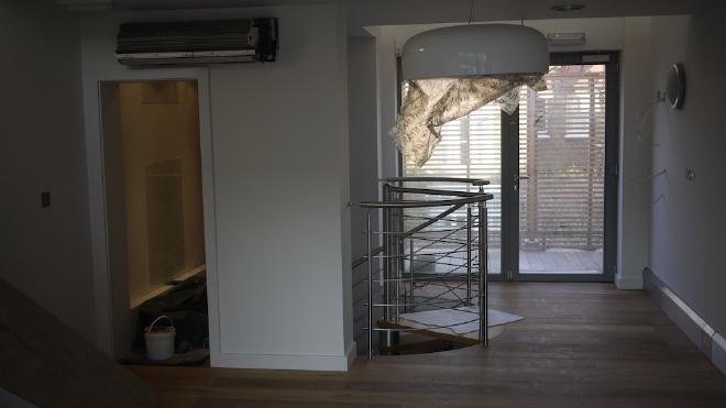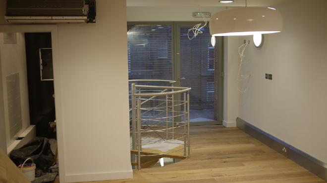 The second floor has a “balcony” which allows you to see up from the first floor but mainly provides additional natural lighting so we also commissioned the same firm to product a balustrade to match the staircase. Unfortunately, due to the weather across Europe this last week it has been delayed on the Italian border and we can’t get the building approved without it, hence the delay on moving in! Instead, a temporary barrier will be put in so we can start using the office without fear of falling.